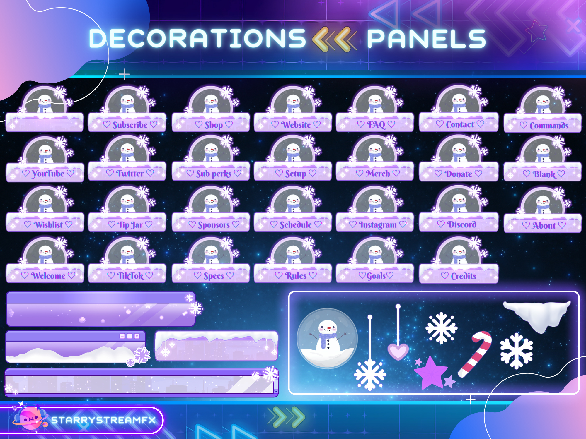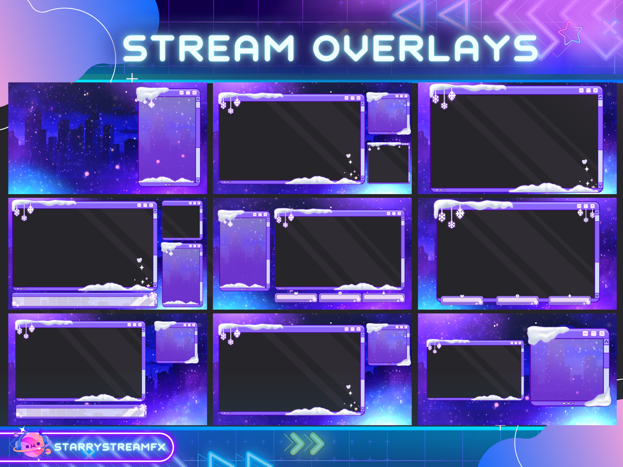 "This stream pack is designed to welcome Christmas and New Year with a snowy and vibrant theme. You can customize your stream with holiday warmth and decorations to make it stand out."